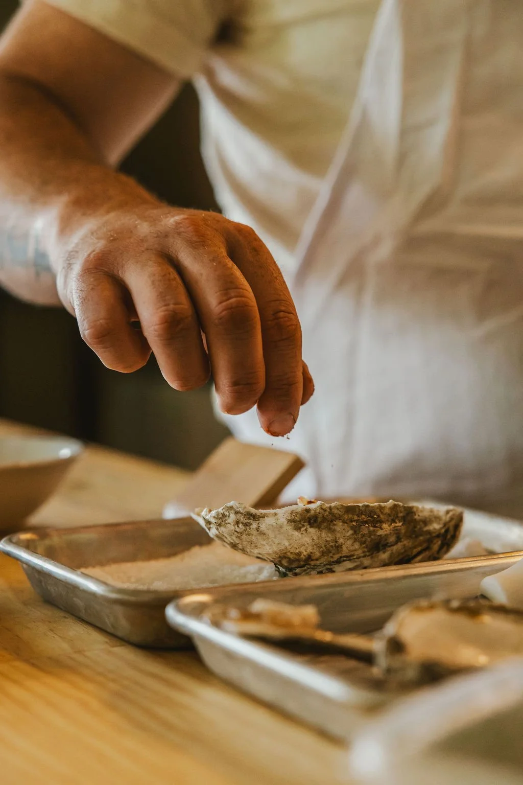 Sometimes we have last minute seats to fill at the Chef's Counter, which we offer at a discount 48 hours before service begins. This is a wonderful opportunity to dine at Sassafras at more accessible pricing, though it requires flexibility that not everyone has, especially those who must travel far distances. While anyone is eligible for these offers, we are pleased that this has become a way for more local residents to experience our shared Chesapeake story—a story of commonality and pride.